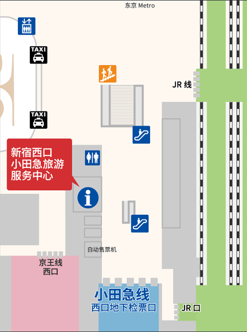 请注意,由于新宿站当前正在进行大规模建设,因此楼梯和自动扶梯的位置已经改变。