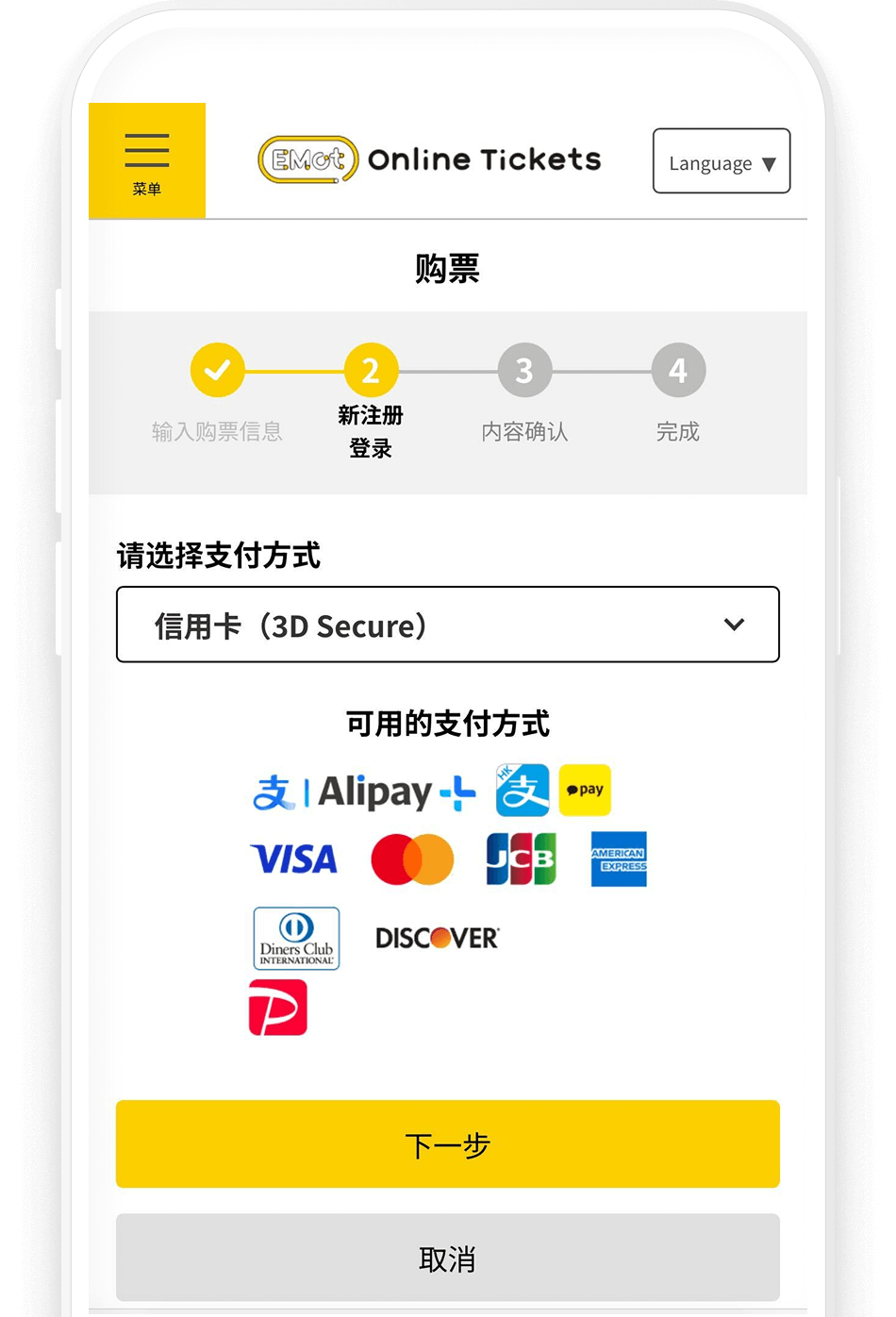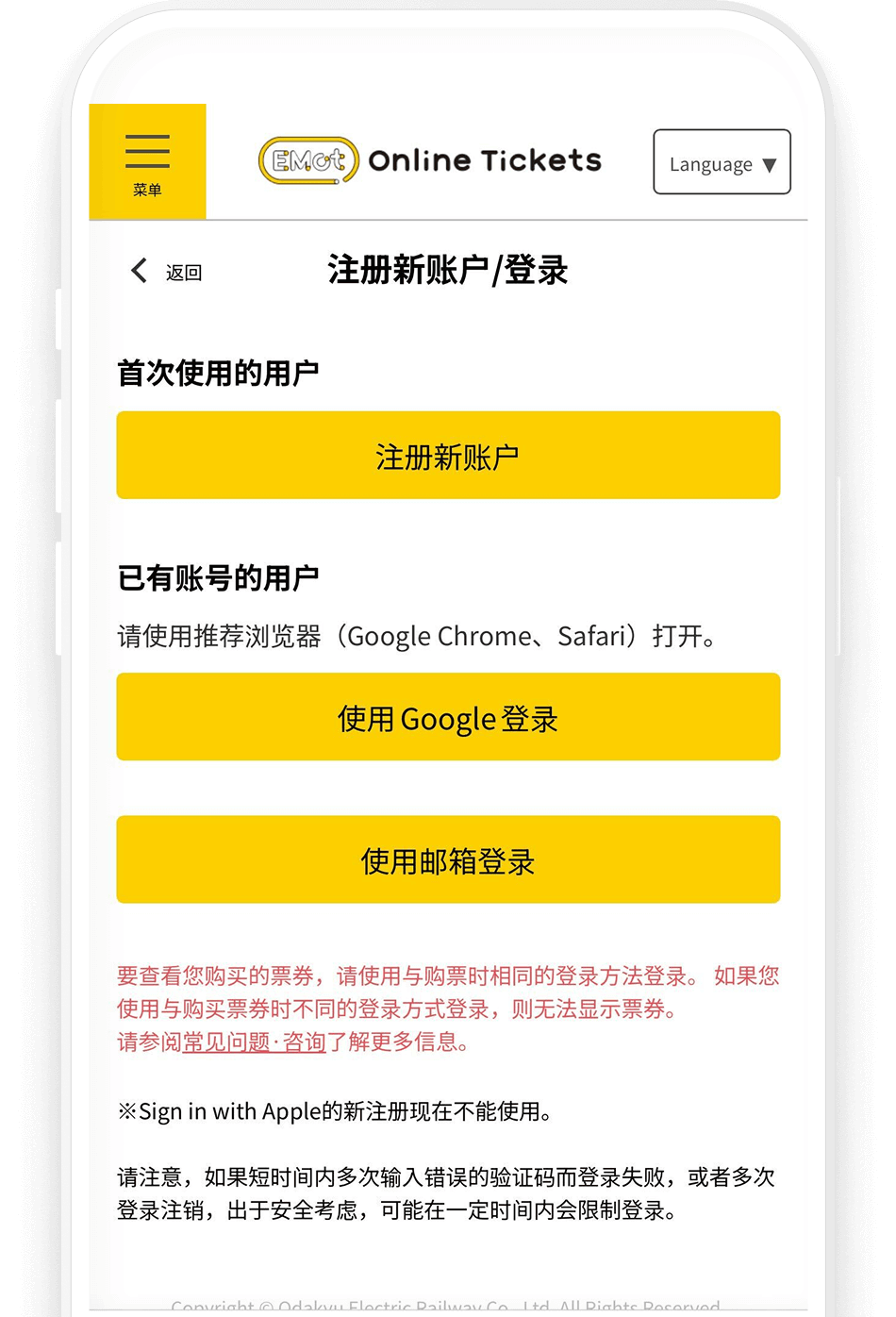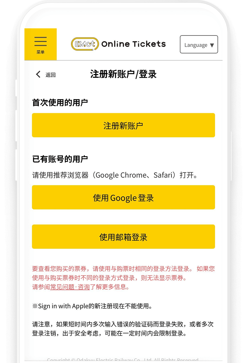 车票只能在智能手机上购买和显示。请注意,个人电脑和平板电脑无法使用。