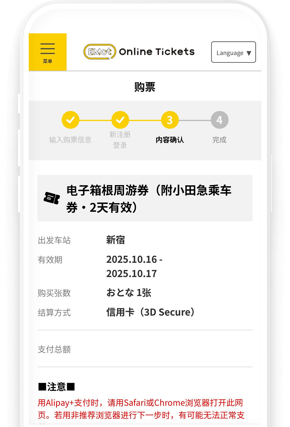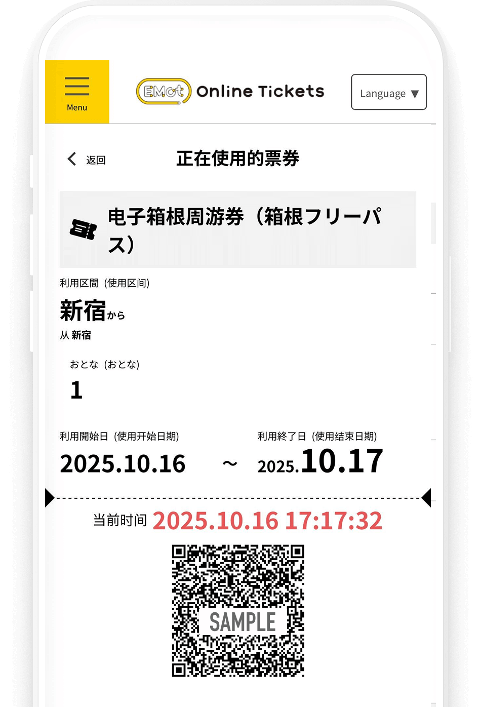 小田急优惠通票现已通过EMot平台全天候在线发售。享受小田急线往返车票、指定区域无限次乘车以及合作景点的特别优惠。