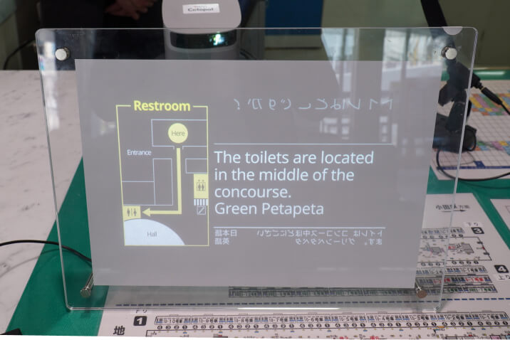 In fiscal year 2025, Shimokitazawa Station and Katase-Enoshima Station introduced the “Cotopat®” system, which can be installed even in small spaces. It recognizes speech in real time, displays dialogue in up to seven languages, and can show pre-registered maps or videos relevant to the conversation. Displayed information can also be accessed later via QR codes.