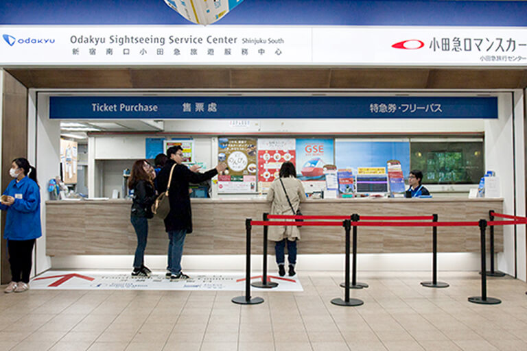 The Odakyu Sightseeing Service Centers are Japan National Tourism Organization-authorized information centers specifically for foreign visitors (except the Hakone-Yumoto). When you arrive in Shinjuku, please pay us a visit. We have tourist information along Odakyu Lines and inform you of the convenient and economical Discount Passes. There is also an Odakyu Sightseeing Service Center at Odawara Station.