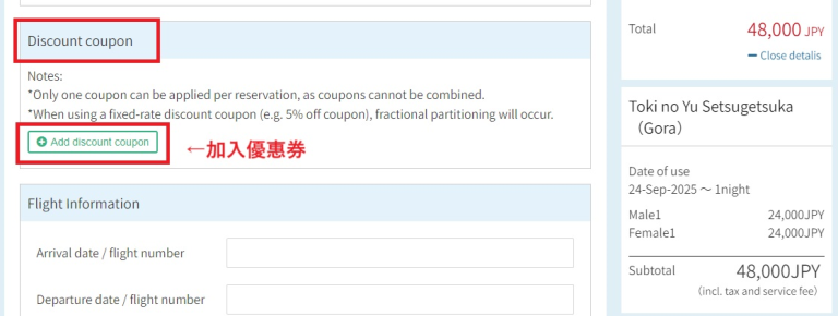 選擇您喜愛的方案,進入預訂詳情頁面後點擊「加入優惠券」以套用折扣