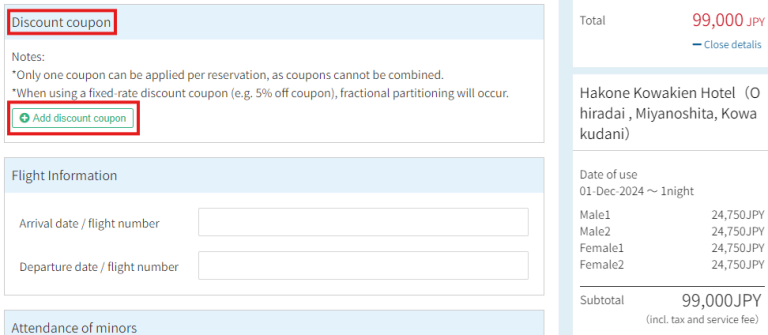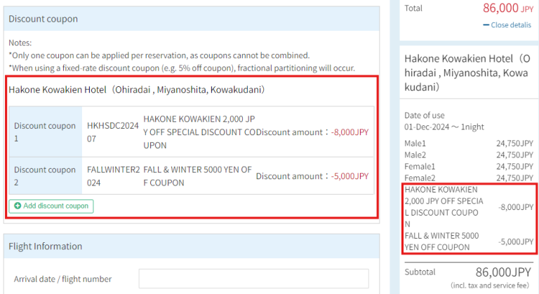 而且,超值優惠活動期間2張優惠券可疊加使用,以4人1室為例,1單預訂可以優惠13,000日圓! 小田急旅行預訂網站限定的活動。