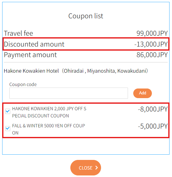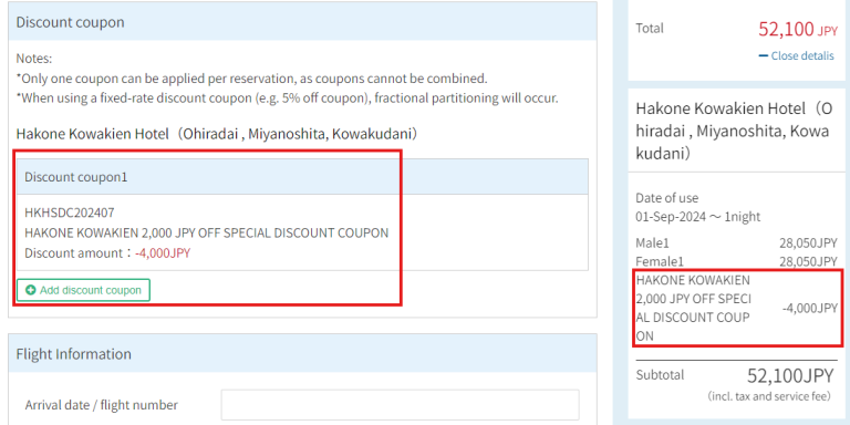 贈送每人2,000日圓OFF或每單預訂5,000日圓OFF的優惠券。