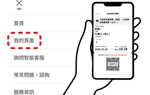 從購買時收到的郵件中進入「我的頁面」或車票頁面,顯示您的車票。