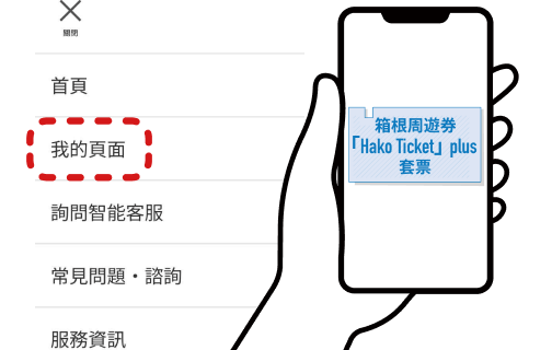 請點選左上方「選單」→「我的頁面」→「所持票券一覽」。