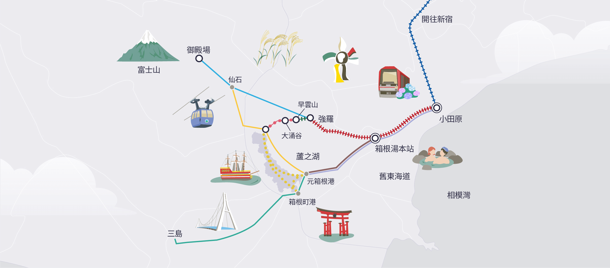 各種周遊券的有效期為1~3天,實際日數因周遊券種類而異。例如,2天有效的箱根周遊券,不分購買時間,一律以周遊券的購買日為第1天。並且,翌日的電車或巴士等可乘坐交通工具的最後一班車結束時間,即為所持周遊券的使用期間的結束。※並不代表可以使用48小時,敬請注意。