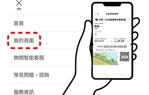 從購買時收到的郵件中進入「我的頁面」或車票頁面,顯示您的車票。