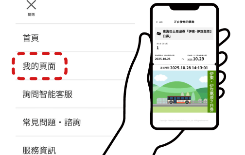 請從您購買時收到的電子郵件中,進入「我的頁面」或票券頁面,並出示車票。
