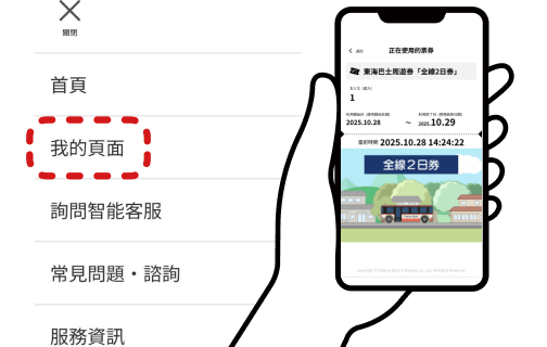 乘坐巴士時,請將紙本通票出示給工作人員。