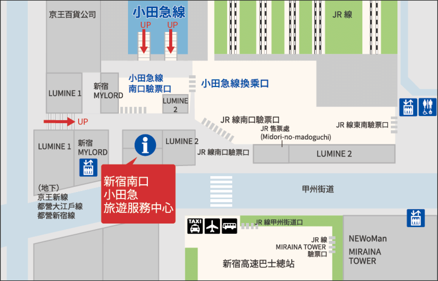 請注意,由於新宿站目前正在進行大規模建設,因此設施如樓梯和自動扶梯的位置已經改變。