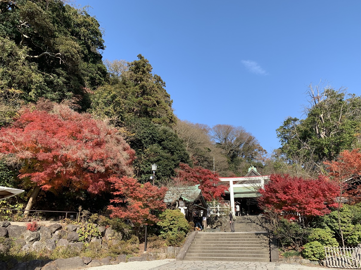 ใบไม้เปลี่ยนสีแต่งแต้มประวัติศาสตร์ของเจ้าชายผู้โศกเศร้า: ศาลเจ้าคามาคุระกู โอโตะโนะมิยะ (ช่วงเวลาชมที่ดีที่สุด: กลางเดือนพฤศจิกายนถึงต้นเดือนธันวาคม)