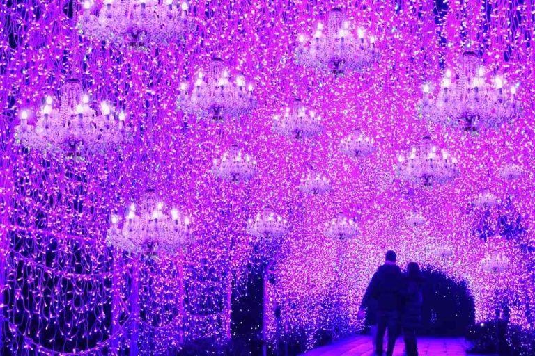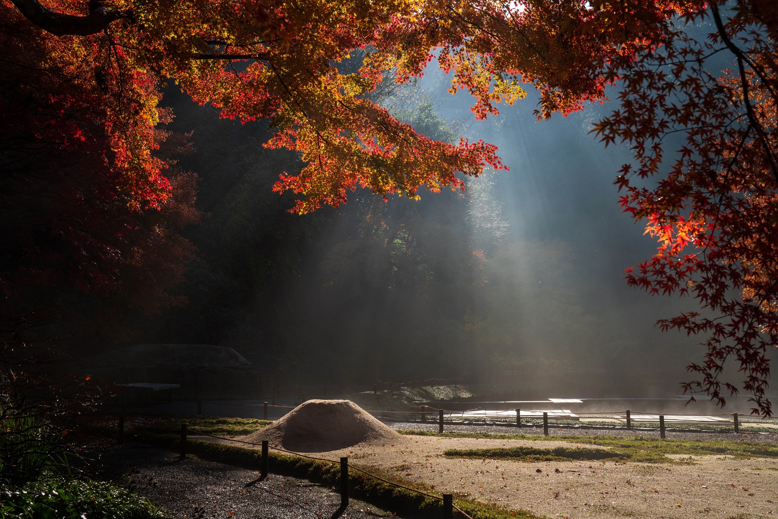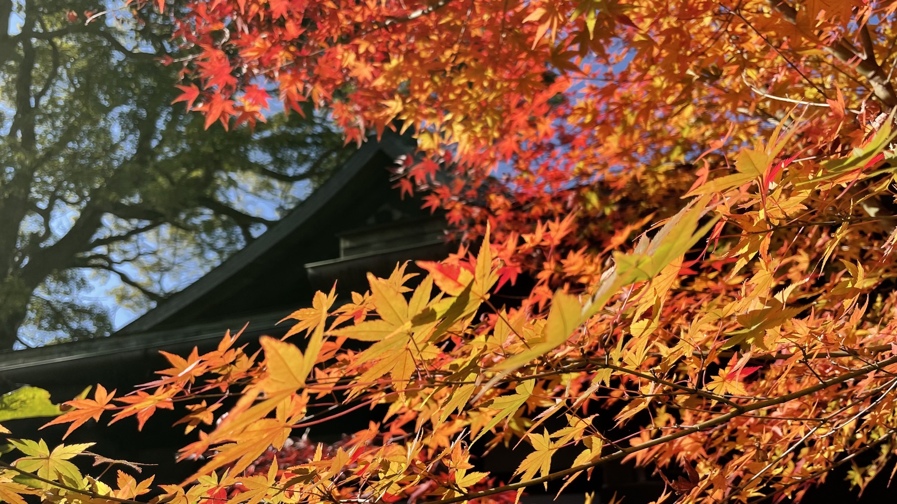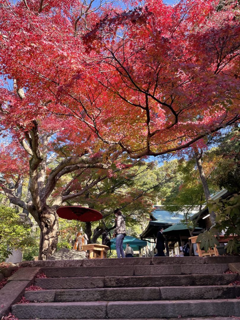 คุณสามารถชมความงามของต้นไม้ “เพดานสีแดงเข้ม” ที่ย้ายมาจากเกียวโต และ “ต้นเมเปิลขนาดใหญ่” ในสวนของศาลเจ้าได้จนถึงกลางเดือนธันวาคม