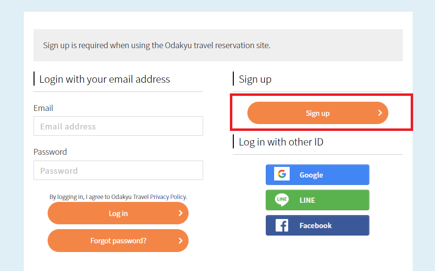 หากคุณไม่ได้เป็นสมาชิก กรุณาสมัครสมาชิกใหม่โดยคลิกที่ “Sign up” และจัดการการจองของคุณ