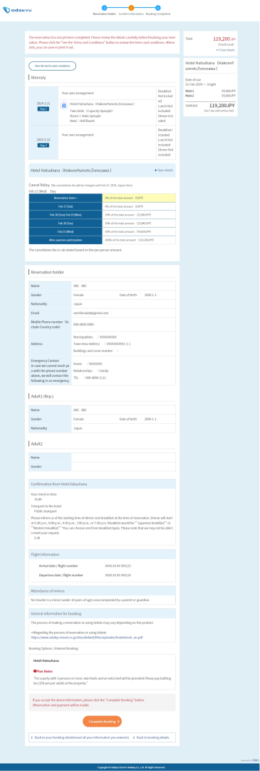 คุณสามารถยืนยันหรือยกเลิกการจองที่พักได้จากหน้าเข้าสู่ระบบ (Login page) ของเว็บไซต์จองโรงแรมโอดะคิว