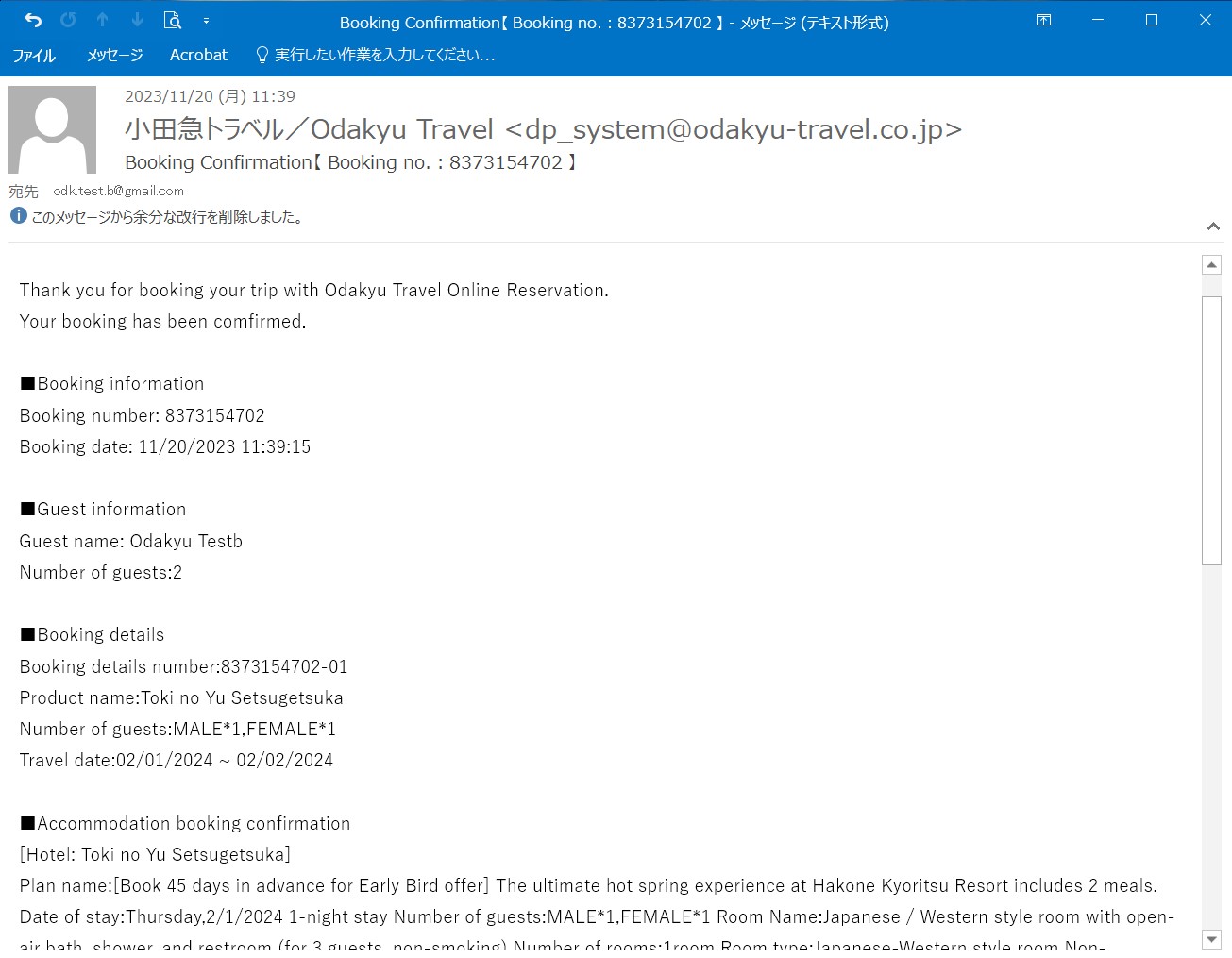 หลังจากการจองเสร็จสิ้น “การแจ้งเตือนการจองเสร็จสิ้น” จะถูกส่งไปยังอีเมลที่คุณลงทะเบียนไว้