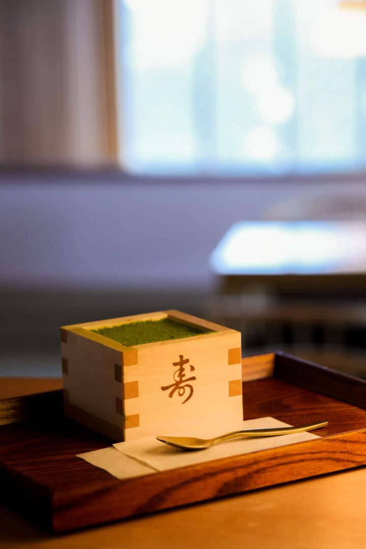 มาลองชิมกาแฟและชาเขียวที่ชงด้วยน้ำบริสุทธิ์อันโด่งดังจากภูเขาโอยามะ รวมถึงทีรามิสุที่ทำจากมัทฉะญี่ปุ่นที่ผลิตในประเทศเสิร์ฟในกล่องไม้แบบดั้งเดิม