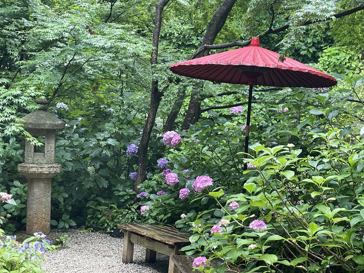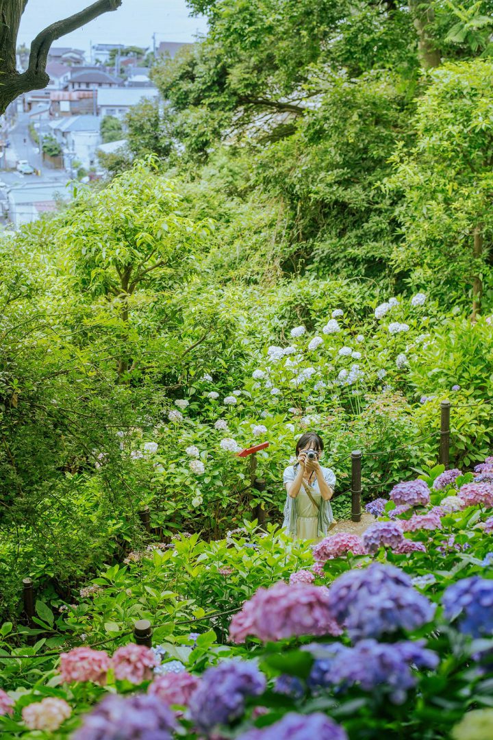ที่คามาคุระ ซึ่งเต็มไปด้วยศาลเจ้าและวัดวาอารามมากมายนั้น มีพื้นที่ในบริเวณวัดและศาลเจ้าหลายแห่งที่ได้กลายมาเป็นจุดชมดอกไฮเดรนเยียชื่อดัง มีทฤษฎีที่ว่าสาเหตุที่คามาคุระมีดอกไฮเดรนเยียมากมายเป็นเพราะลักษณะภูมิประเทศที่ล้อมรอบด้วยเนินเขาและภูเขาเตี้ยๆ จึงมีการปลูกดอกไฮเดรนเยียอย่างแพร่หลายเพื่อป้องกันการพังทลายของดินบนลาดเขา และแม้จะมีชื่อเป็นดอกไฮเดรนเยียเหมือนกัน แต่ที่นี่ก็มีดอกไฮเดรนเยียอยู่หลากหลายรูปแบบ ในช่วงต้นฤดูร้อน ที่นี่จะเต็มไปด้วยดอกไฮเดรนเยียหลากสายพันธุ์หลากสีสันที่บานสะพรั่งประดับประดาอดีตเมืองหลวงแห่งนี้ ผู้มาเที่ยวชมจะได้สัมผัสกับโลกที่มีเสน่ห์แตกต่างไปจากฤดูกาลอื่นๆ ด้วยสีสันที่สดใสของมวลดอกไม้และทัศนียภาพอันสงบงดงามชวนให้ผ่อนคลาย