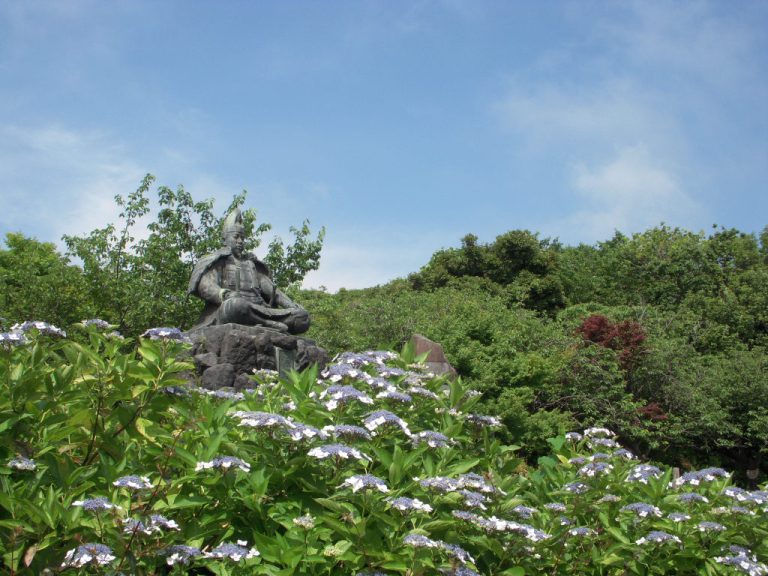 สวนสาธารณะแห่งนี้ตั้งอยู่บนภูเขาที่มีความเกี่ยวพันกับมินาโมโตะ โนะ โยริโตโมะ ผู้ก่อตั้งรัฐบาลทหารคามาคุระ แม้ที่นี่จะเป็นที่รู้จักในฐานะจุดชมซากุระและใบไม้เปลี่ยนสี แต่ก็เป็นจุดชมดอกไฮเดรนเยียด้วยเช่นกัน ที่ลานกลางสวนมีรูปปั้นทองแดงของโยริโตโมะในวัยหนุ่ม ประมาณช่วงปีค.ศ. 1180 ตั้งอยู่เป็นสัญลักษณ์ประจำสวน ในช่วงพีคของหน้าดอกไม้บานที่นี่จะมีดอกไฮเดรนเยียบานสะพรั่งรอบๆ รูปปั้นไปทั่วทั้งบริเวณ ด้านในภูเขายังมีศาลเจ้าคุซุฮาระโอกะที่โด่งดังในเรื่องของการอธิษฐานขอพรเรื่องความรักซึ่งผู้มาเยี่ยมชมสามารถมาชื่นชมดอกไฮเดรนเยียได้ทั้งภายในบริเวณศาลเจ้าและ ระหว่างเส้นทางไปนมัสการ