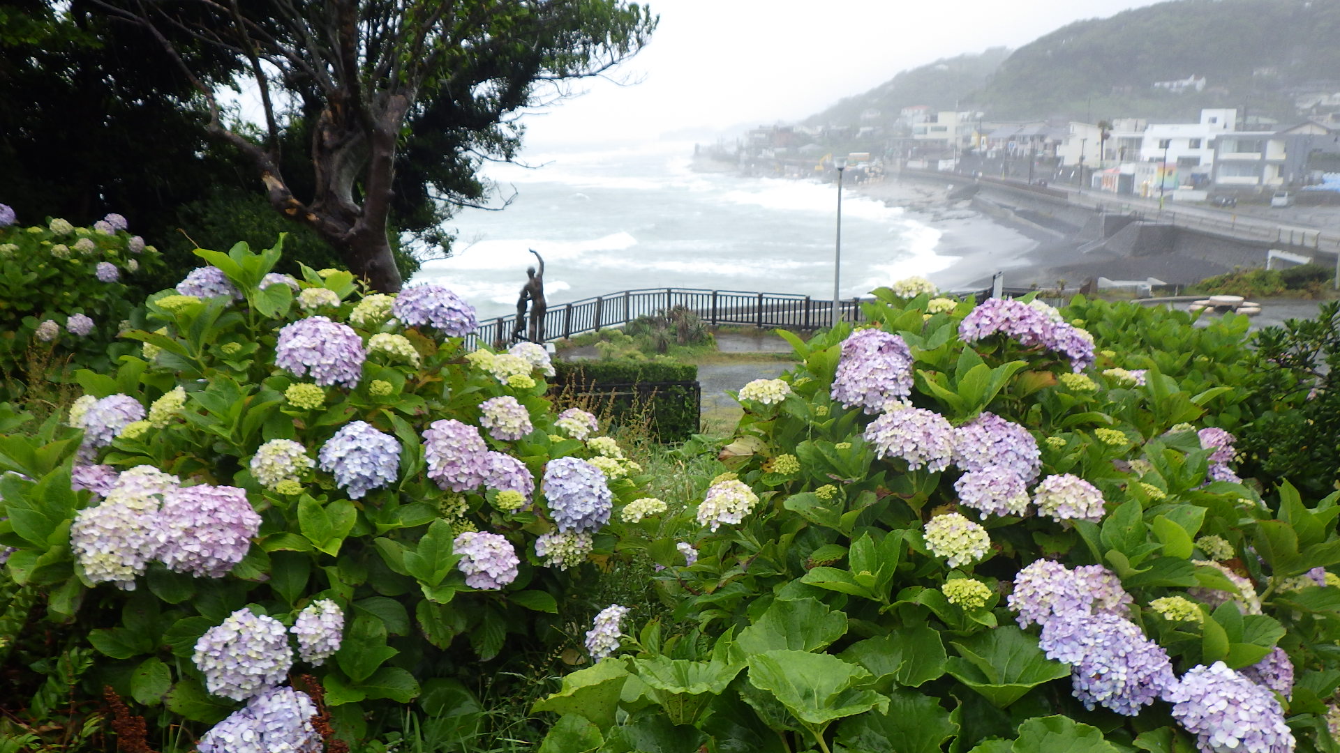 "สวนสาธารณะคามาคุระไคฮิงโคเอ็น (สวนสาธารณะริมชายฝั่งคามาคุระ)" คือชื่อเรียกรวมสวนสาธารณะ 3 เขต ที่ตั้งอยู่บริเวณแนวชายฝั่งคามาคุระตั้งแต่อินามุระกาซากิไปจนถึงซาอิคิซาโอะ เป็นจุดชมวิวที่ถูกกล่าวขานว่ามีทิวทัศน์และทัศนียภาพยามพลบค่ำที่สวยที่สุดในคามาคุระ ชายหาดแห่งนี้เป็น 1 ใน 100 จุดชมทัศนีภาพของภูเขาไฟฟูจิในภูมิภาคคันโต และสวนสาธารณะที่มีจุดชมวิวแห่งนี้ก็เป็นหนึ่งในจุดชมดอกไฮเดรนเยียเช่นเดียวกัน แม้จะมีจำนวนต้นไฮเดรนเยียไม่มากนัก แต่ผู้มาเยี่ยมชมสามารถเพลิดเพลินไปกับทิวทัศน์โดยรอบและดอกไฮเดรนเยียได้พร้อมกัน