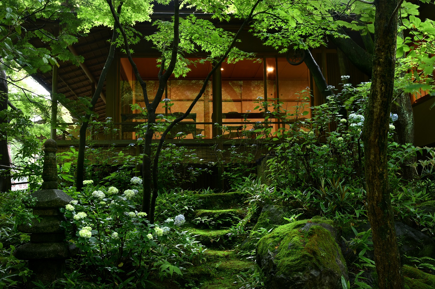 ที่สวนของคฤหาสน์แห่งนี้ยังสามารถชื่นชมดอกไม้ตามฤดูกาลได้ตลอดทั้งปี และในช่วงฤดูดอกไฮเดรนเยีย ที่นี่ก็จะเต็มไปด้วยดอกไฮเดรนเยียที่แต่งแต้มสีสันให้กับสวน และมี "ฮานาโจซุ" ซึ่งเป็นอ่างน้ำล้างมือที่ประดับด้วยดอกไม้ตามฤดูกาลสีสดใสสวยงามวางไว้ตามจุดต่างๆ นอกจากนี้ที่นี่ยังมีคาเฟ่ให้ผู้มาเยี่ยมชมได้ผ่อนคลายพร้อมชมทิวทัศน์ที่งดงาม