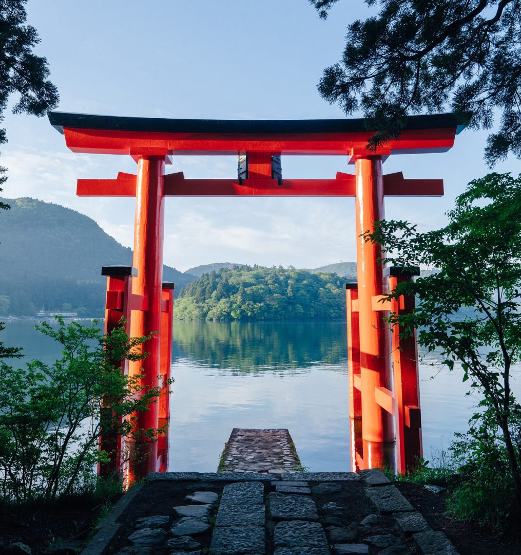 จากศาลเจ้าฮาโกเน่เดินกลับไปยังท่าเรือโมโตะ-ฮาโกเน่เพื่อขึ้นเรือไปลงที่ท่าเรือโทเง็นได เพลิดเพลินไปกับการล่องเรือในทะเลสาบอาชิ เรือทัศนาจรนี้ (หรือที่เรียกกันว่าเรือโจรสลัด) มีทั้งหมดสามลำ แต่ละลำตกแต่งภายในอย่างหรูหราและมีเอกลักษณ์เฉพาะตัว จะนั่งพักผ่อนภายในเรือหรือจะขึ้นไปชมวิวบนดาดฟ้าเรือก็ได้ วิวภูเขาฮาโกเน่จากดาดฟ้าเรือจะช่วยให้คุณได้ผ่อนคลายจิตใจ