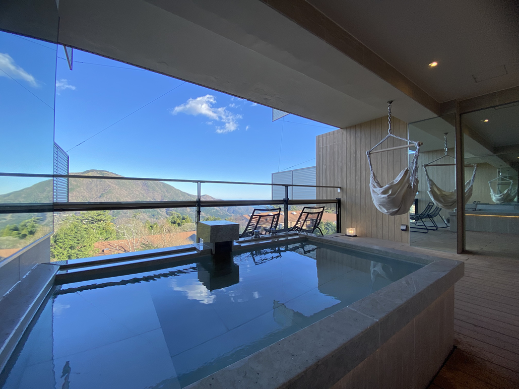 การได้แช่ออนเซ็นในห้องพักของตัวเองได้ตลอดทั้งวันตามต้องการ ถือเป็นช่วงเวลาสุดเอ็กซ์คลูซีฟ ช่วงเวลาที่ได้แช่น้ำร้อนท่ามกลางทัศนียภาพอันงดงามของฮาโกเนะ โดยไม่มีใครมารบกวนนั้น จะช่วยให้ทั้งร่างกายและจิตใจได้ผ่อนคลาย และกลายเป็นความทรงจำสุดพิเศษสำหรับการเดินทางท่องเที่ยว