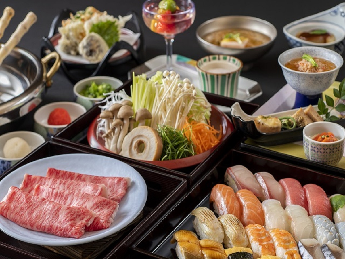 ภายในที่พักมีห้องอาหารสองแห่งที่เชฟจะใช้วัตถุดิบตามฤดูกาลเพื่อรังสรรค์เมนูสุดพิเศษขึ้น ที่ห้องอาหาร "คะโจ" คุณสามารถเพลิดเพลินกับอาหารไคเซกิตามฤดูกาลและหม้อไฟสี่ฤดูที่มีวัตถุดิบทั้งจากภูเขาและทะเล โดยใช้อาหารทะเลและผักท้องถิ่นเป็นองค์ประกอบหลัก และที่ห้องอาหาร "ฟูเก็ตสึ" คุณสามารถเพลิดเพลินกับชาบูชาบูเนื้อวากิวและซูชิ พร้อมชมการปรุงอาหารทะเลและอาหารจากภูเขาสดๆ ตรงหน้า อาหารเช้าจะเป็นเมนูเช้าแบบญี่ปุ่นทั่วไป เช่น ปลาย่างและซาชิมิ เป็นการเริ่มต้นวันเดินทางอย่างสบายๆ นอกจากนี้ ในตอนกลางคืนหลังมื้อเย็น หลังจากที่ได้แช่น้ำร้อนอย่างผ่อนคลายแล้ว หากรู้สึกหิว ที่นี่ก็มีบริการโซบะยามดึกอันเป็นเอกลักษณ์ของที่พักอีกด้วย