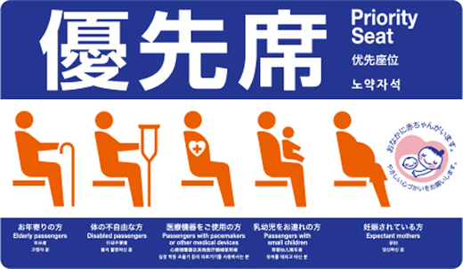Please yield to to those who require a seat, including the elderly, injured and sick passengers, passengers with children, pregnant women and passengers with pacemakers.